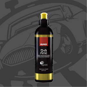 RUPES D-A FINE is the result of extensive testing to develop a fine polish that combines noticeable cutting performance with impressive finishing. The proprietary formula developed and blended in-house by RUPES is designed to perform with Dual Action polishers, including both large-stroke random orbital and gear-driven tools. Color-coordinated to RUPES yellow foam, wool, and microfiber pads, DA-FINE delivers excellent defect removal, incredibly high finish quality, and a super-easy wipe off for excellent user experience. DA-FINE represents the perfect second polishing step after DA-COARSE on virtually every type of painted, gelcoat, or varnished finish or as a stand-alone solution for light polishing needs.