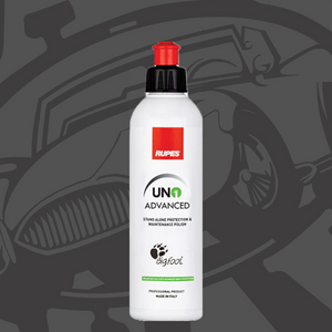 UNO ADVANCED combines an incredible shine and extremely durable protection in one finishing polish. The proprietary formula developed, blended, and packaged completely in-house by RUPES features highly technical micro-abrasive technology fused with state-of-the-art nano protection. UNO ADVANCED removes minor imperfections from a variety of surfaces while creating a durable layer of protection that provides up to 12 months of protection against environmental contaminates and makes cleaning incredibly easy.